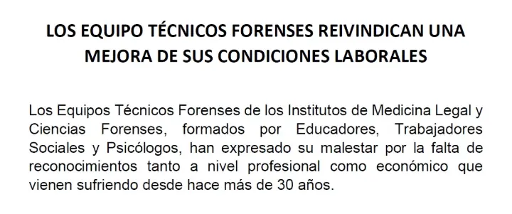 Por lo tanto, los Equipos Técnicos Forenses demandan un reconocimiento profesional de su labor y un salario justo y